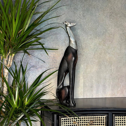 50cm Elegant Tall Slim Sitting Dog Statue Greyhound Silver Ornament Dog Lovers Whippet Figurine Sitting Greyhound