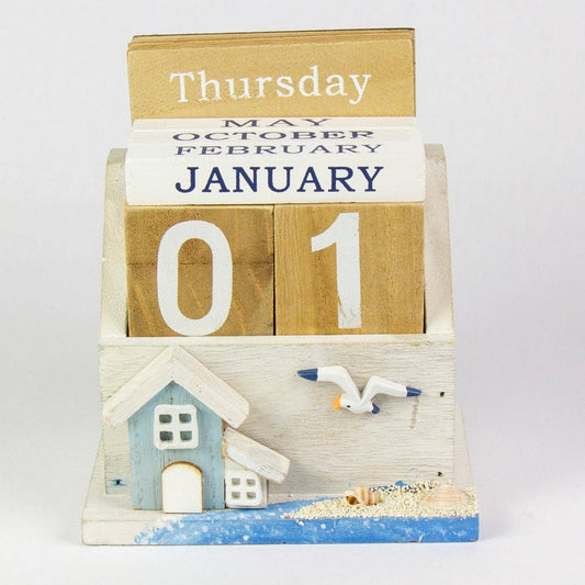 15cm 3D Wooden Desk Calendar Wooden Cottage Harbourside Houses with Sea Gull Nautical Sea Decor Calendar Coastal Scene Beach Theme