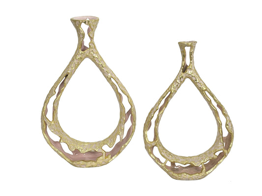 Pale Pink Gold Vase Abstract Metallic Finish Contrast Textured Surface Modern