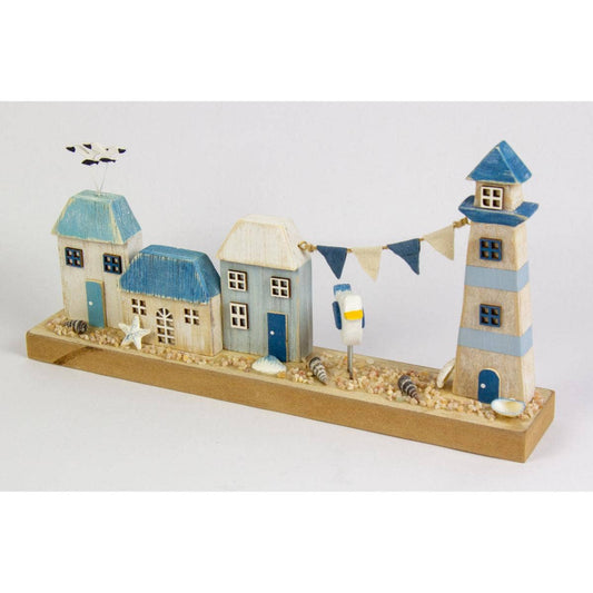Lighthouse and 3 Cottages on Plinth, 32cm
