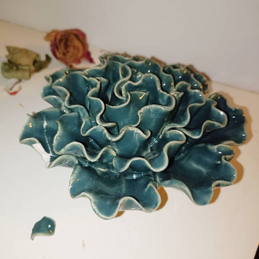 15cm Ceramic Wall Flower Sea Lettuce Teal Turquoise Floral Vegetable Wall Mounted Ceramic Sea Lettuce