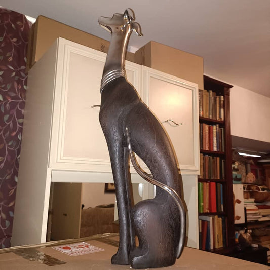 73cm Elegant Tall Slim Sitting Dog Statue Greyhound Silver Ornament Dog Lovers Figurine Extra Large Whippet Figurine Sitting Greyhound